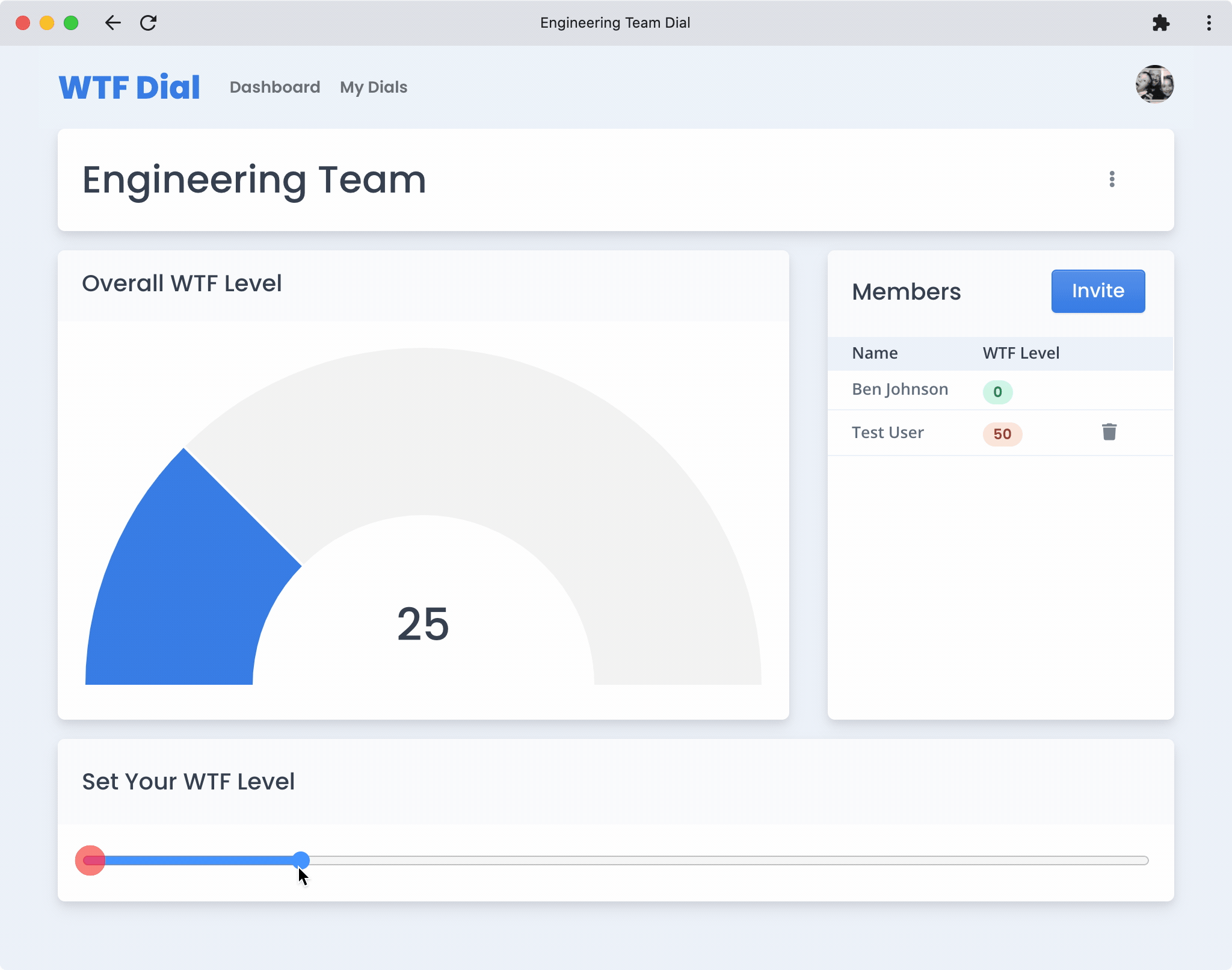 The current state of the dial goes to some dashboard, along with all of your teammates. So at any moment you can see how fucked everyone is. Just as a passive indicator. If someone is WTF-ing, you can ask them if they want to chat, and help them get un-WTF'd."